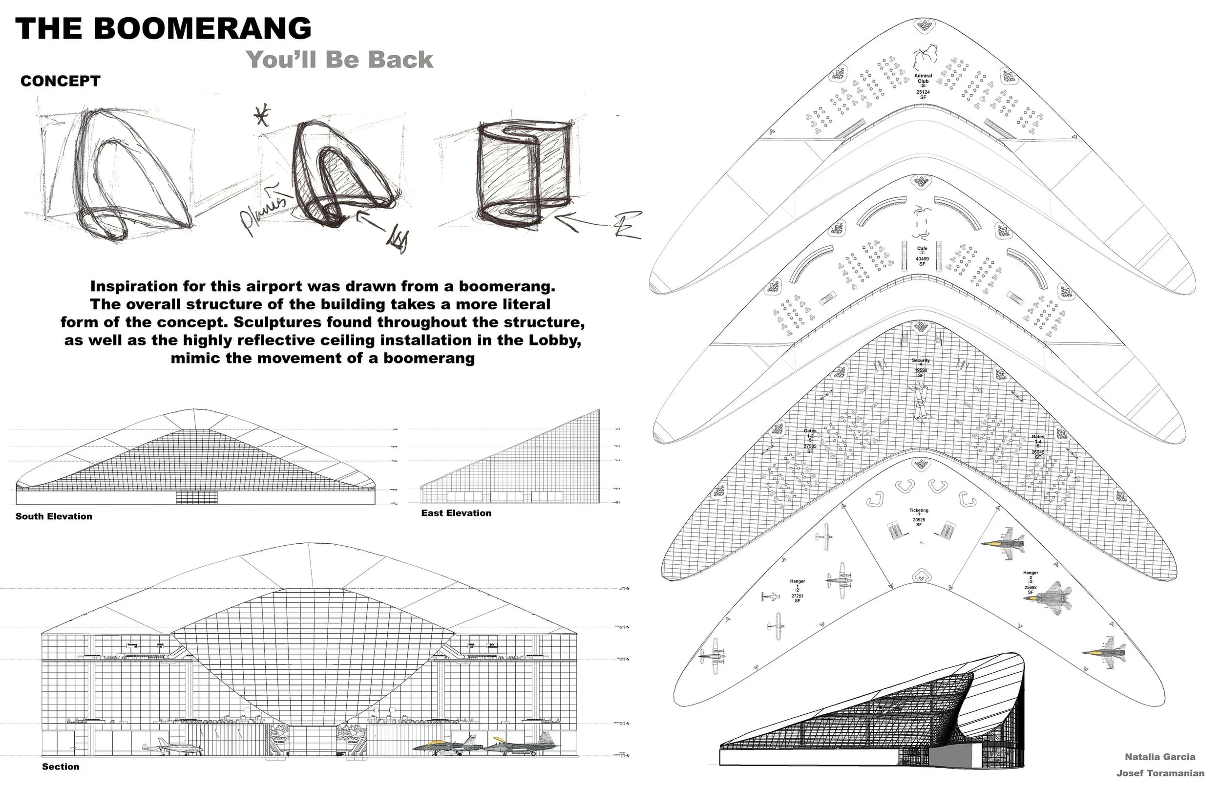 An airport concept inspired by the shape and movement of a boomerang. You'll be back.