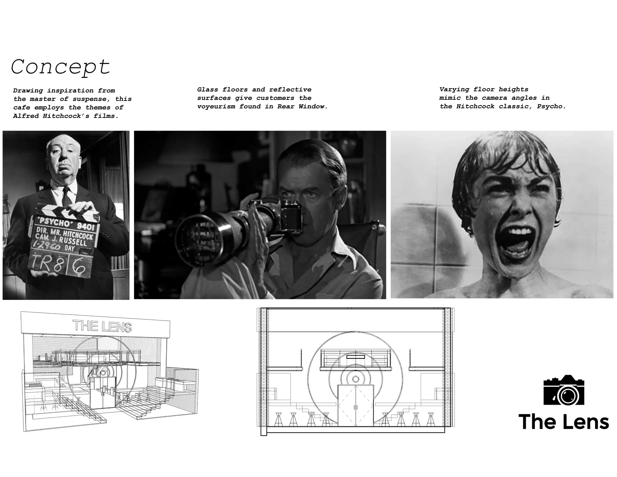 A cafe concept inspired by Hitchcock's voyeuristic film, Rear Window.